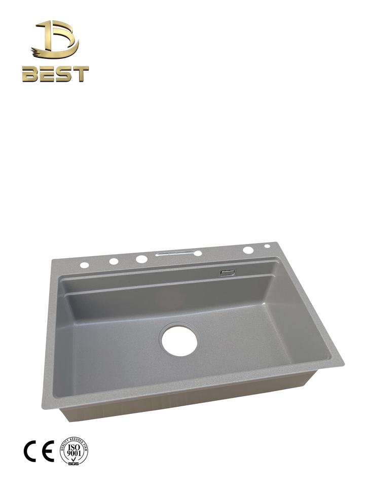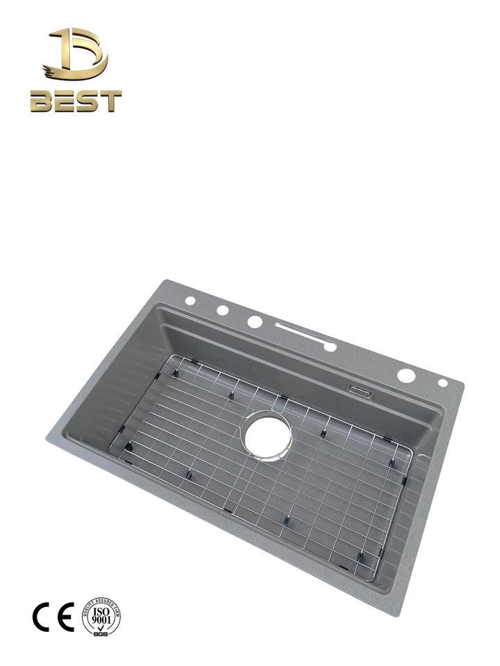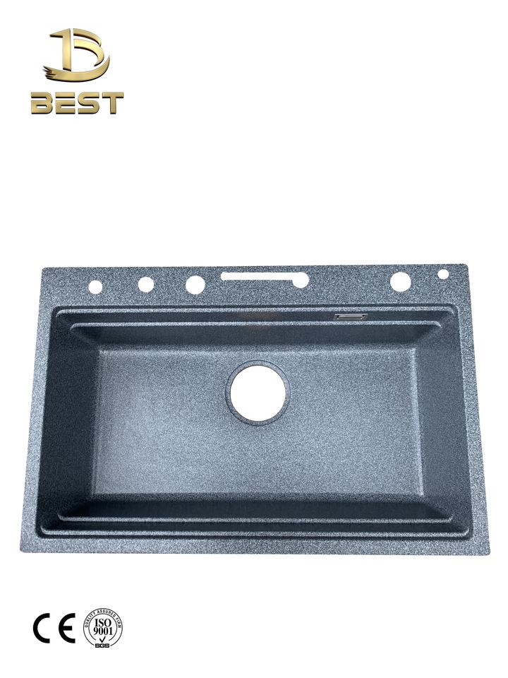 Luxury Black Anti-Scratch Quartz Stone Composite Granite Kitchen Sink Topmount Style Single or Double Bowl with One Two Holes