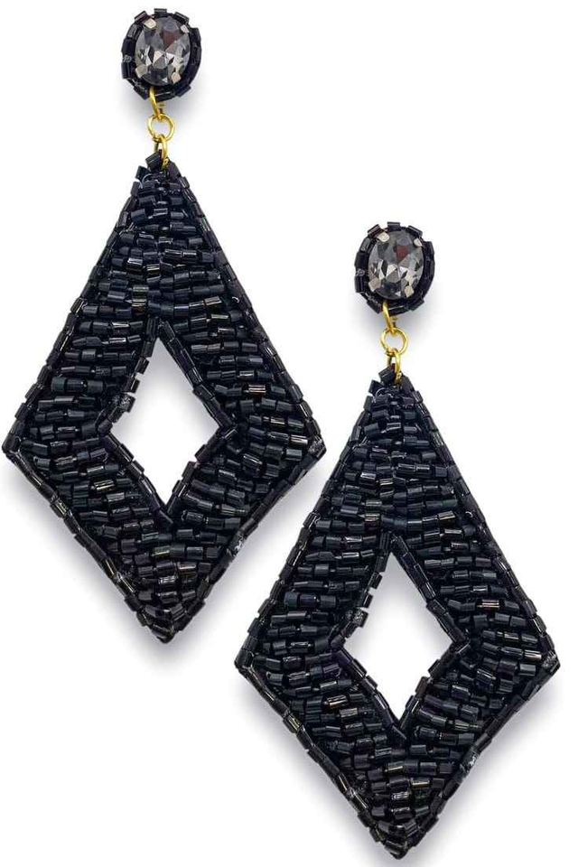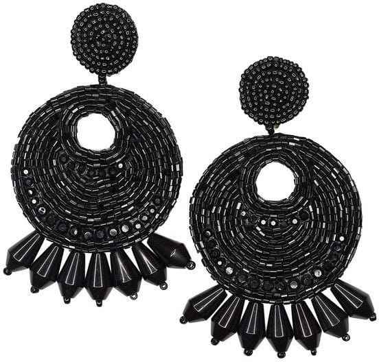 Luxury Black Beaded Statement Dangle Earrings Hand Embroidered with Luxury From India Trendy Style by glowin fashion