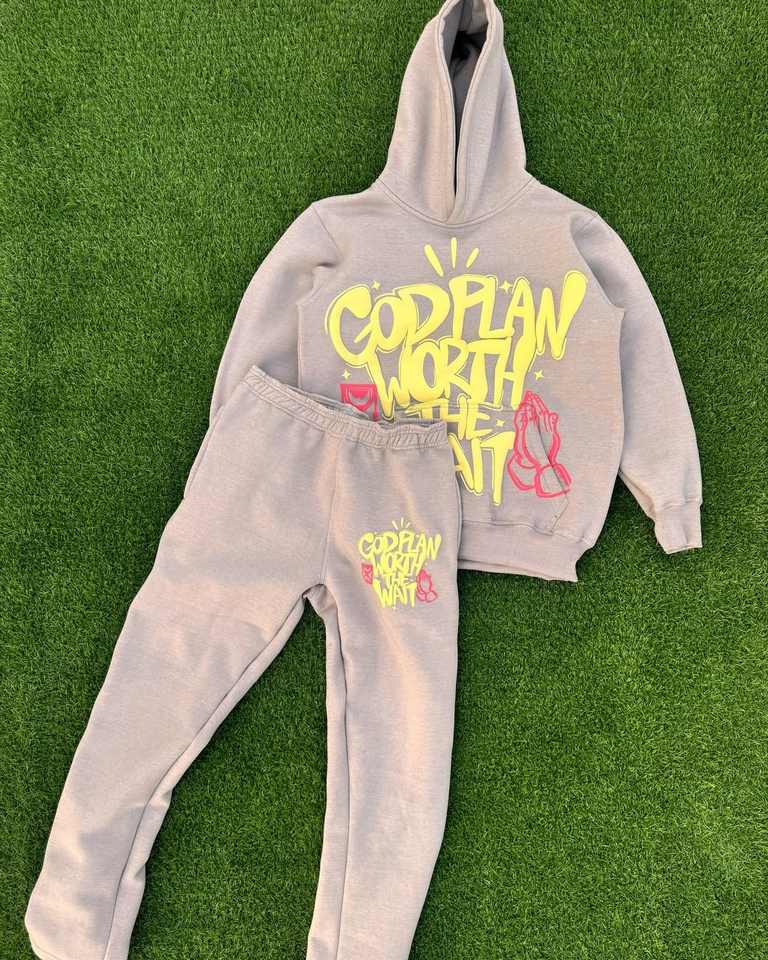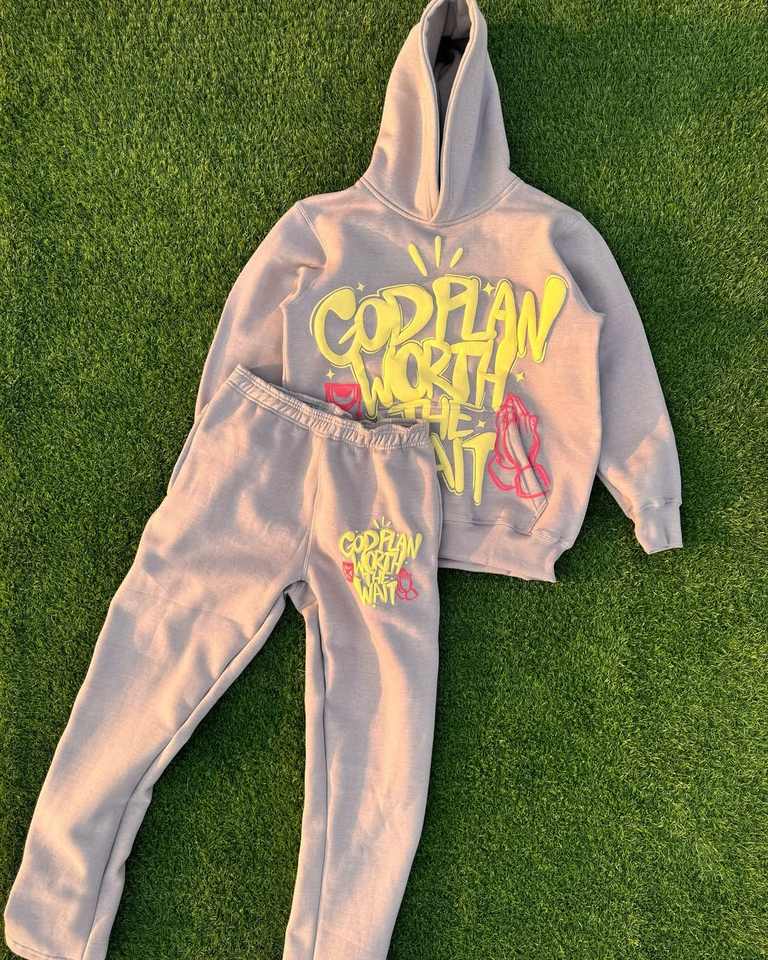 Luxury Black Full Zip PACKEZZZ Graphic Hoodie Sweatpants Set White Rope Lacing Detail Streetwear Tracksuit Oversized Fit