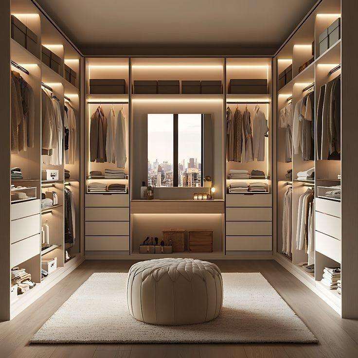 Luxury Black Glass Door Wardrobe With LED Lighting Shelves Drawers And Hanging Space Modern Bedroom Storage Design