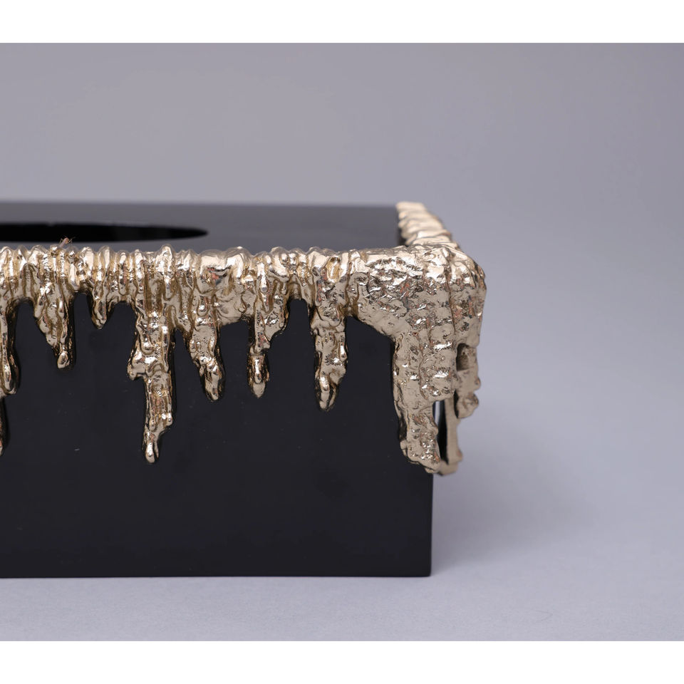 Luxury Black Glossy Tissue Box Holder with Golden Dripping Edge Design Modern Decorative Tissue Cover for Home Hotel Office