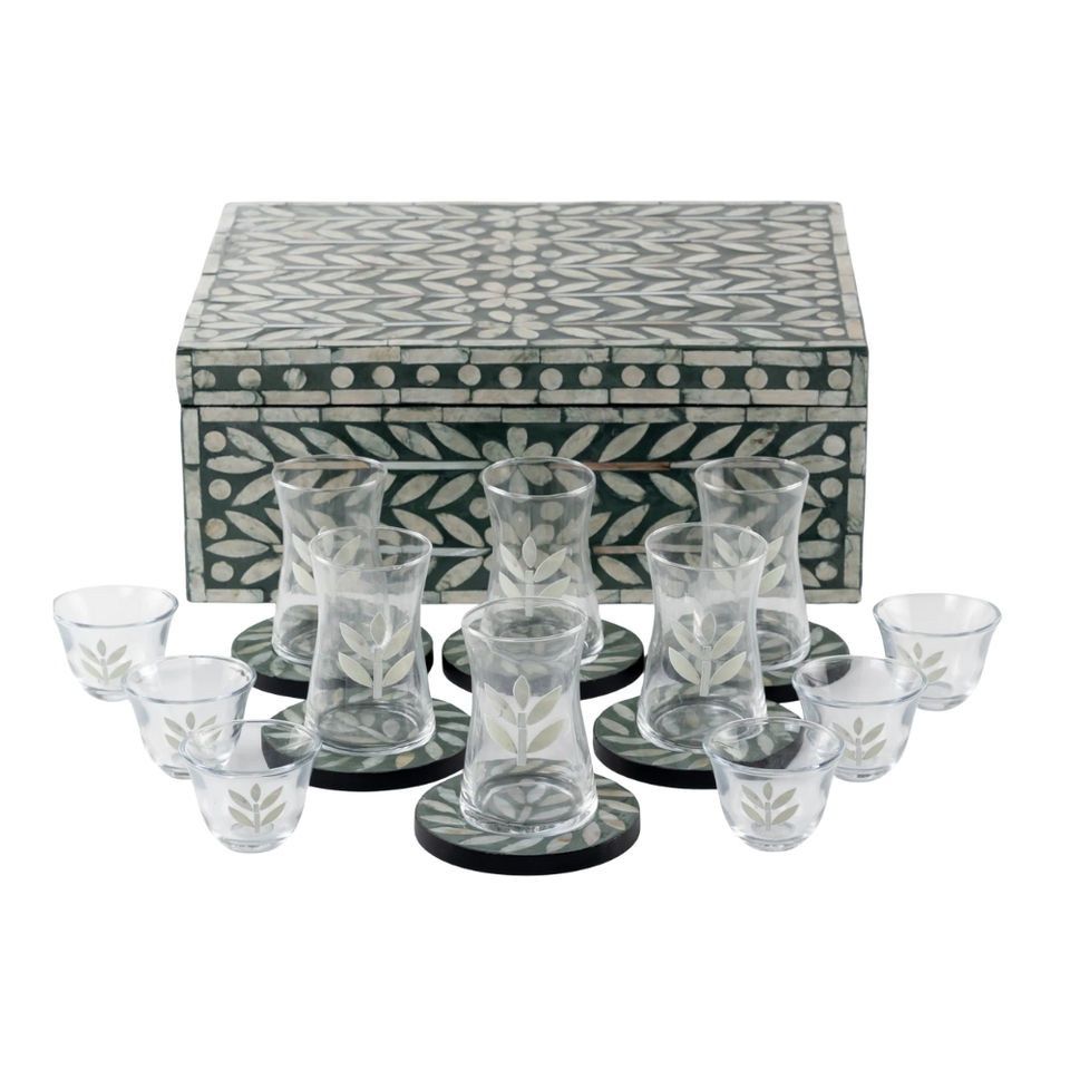 Product name:Mother of Pearl Inlaid Tea Glass and Coaster Set with Storage Box
