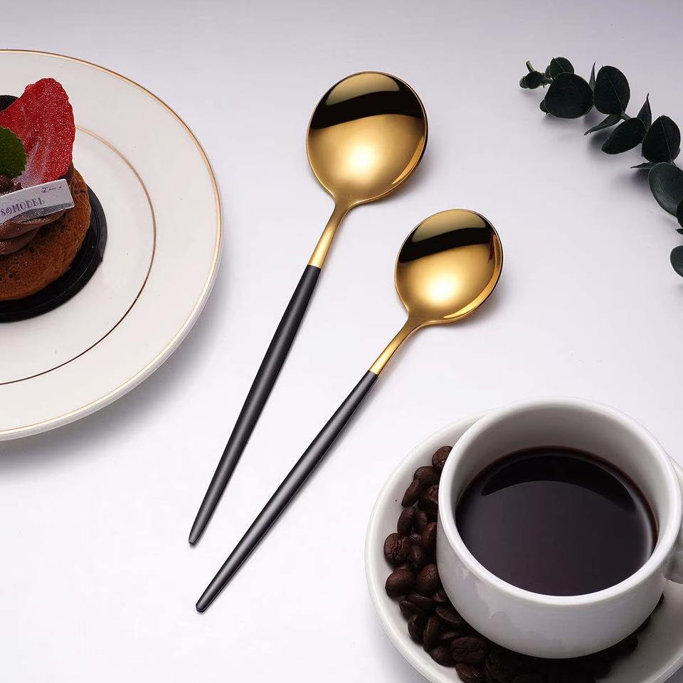 Luxury Black Slim Handle Flatware Set Gold Head Cutlery Ideal for Parties Gatherings and Special Occasions From India