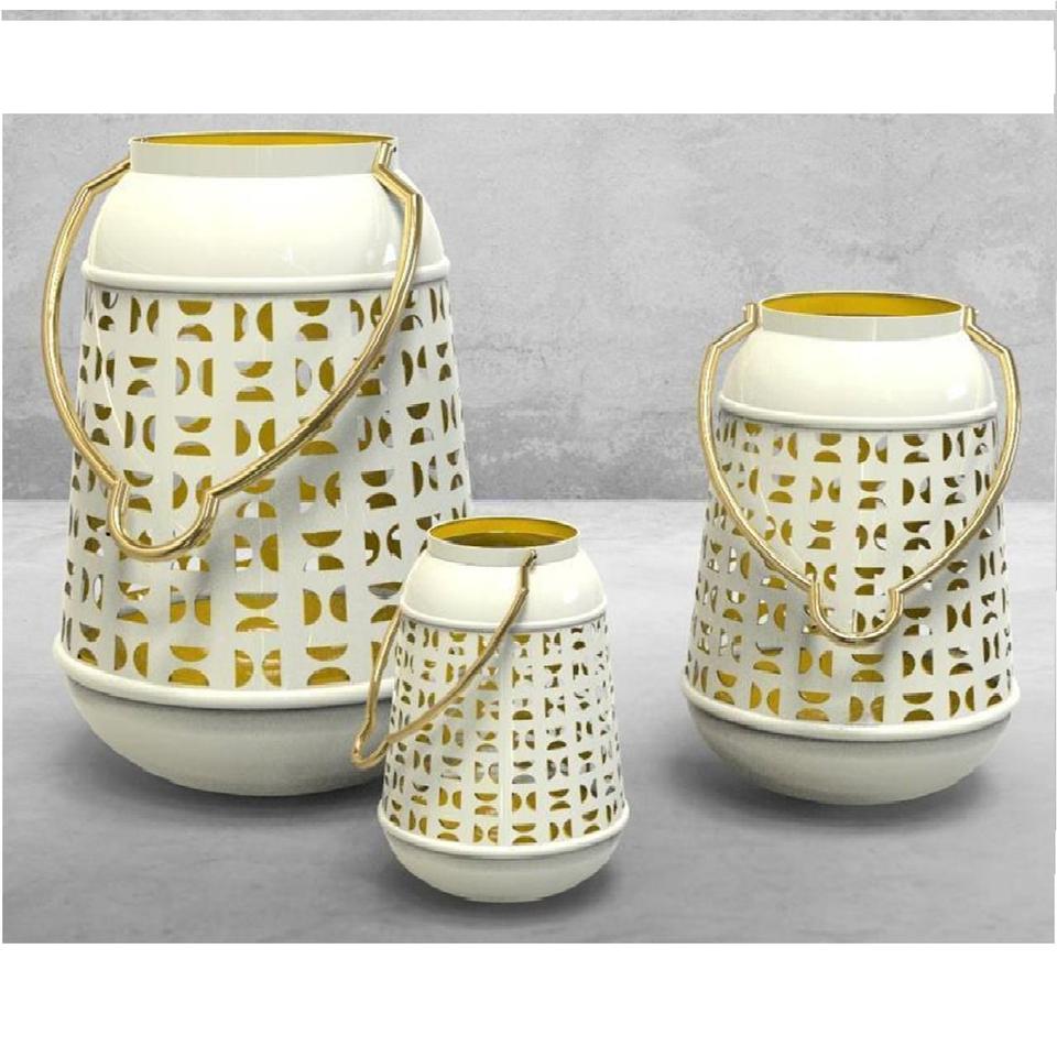 Luxury Black Stainless Steel Metal Candle Holder with Gold Dots Decorative Modern Candle Lantern for Home & Hotel Decor.