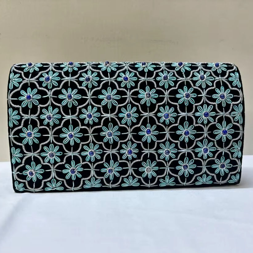 Luxury Black Velvet Clutch for Women Handcrafted Evening Purse Embellished with Lapis Lazuli Beads Elegant Party Accessory