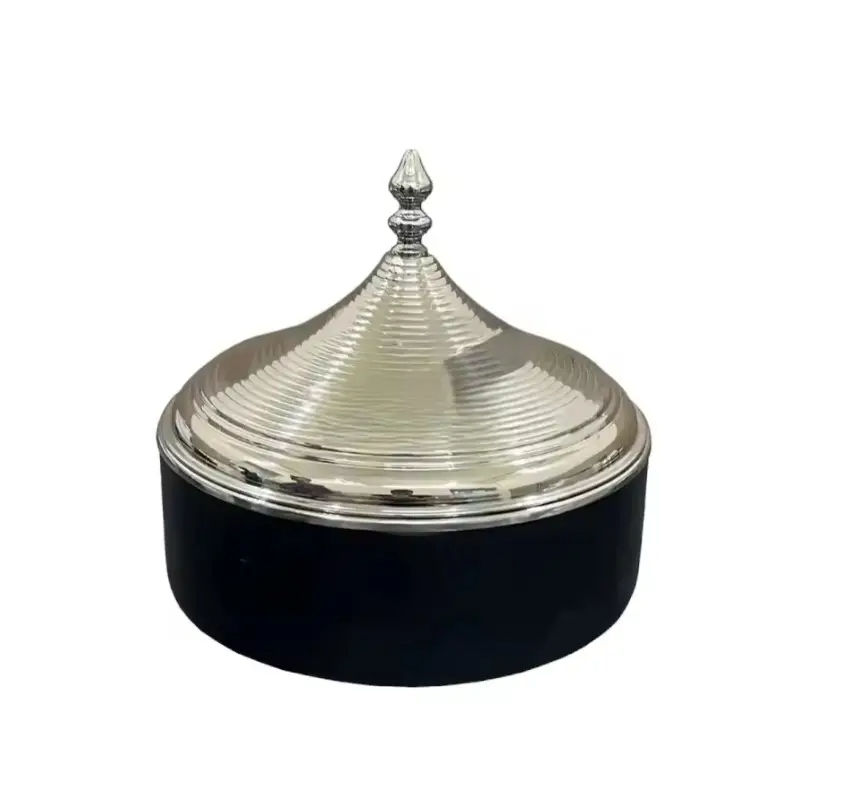 Luxury Black and Silver Casserole With Hammered Work Lid Unique Design for Hot Pot Serving and Stylish Dining Tabletop Display