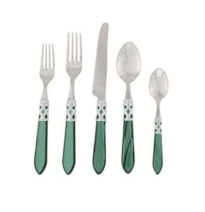 Luxury Blue Acrylic Plastic Handle Silver Flatware Set Antique and Retro Style Medieval Dinner Knife Fork Spoon Sets for Wedding