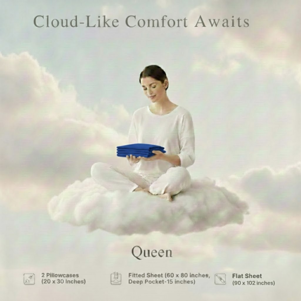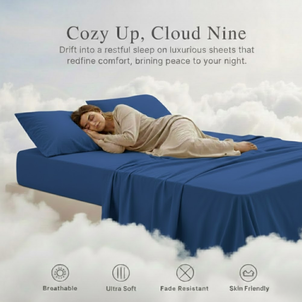 Luxury Blue Bedsheet Pillow Set 2026 | Soft Breathable Fabric | Hotel Finish Comfort | Elegant Queen Bedding Collection