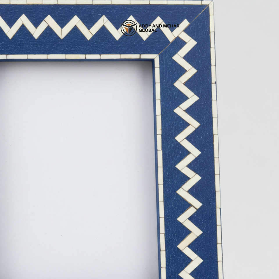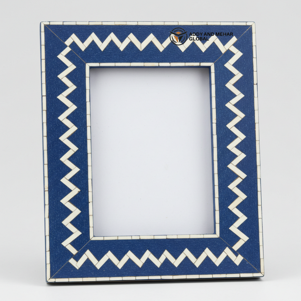 Luxury Blue Bone Inlay Photo Frame Handcrafted Decorative Frame for Interiors