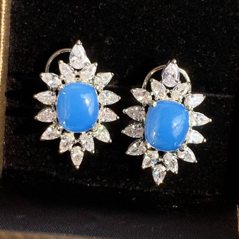 Luxury Large Statement Stud Earrings Blue CZ & Lab Grown Turquoise Cubic Zirconia Designer Jewelry Bride Gift for Wedding Party