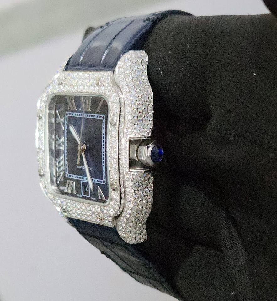 Luxury Blue Dial Sapphire Crystal Iced Moissanite Diamond Watch Square Case Miyota Mechanical Analog 40mm Auto Date Stylish Hip