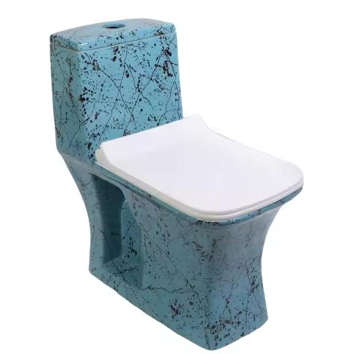 Luxury Blue Natural Printed Ceramic One Piece Water Closet Toilet Sanitary Ware Wholesale Bathroom