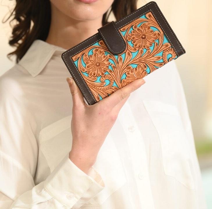 Product name:Yellow Saddle Blanket Clutch with Tooled Leather