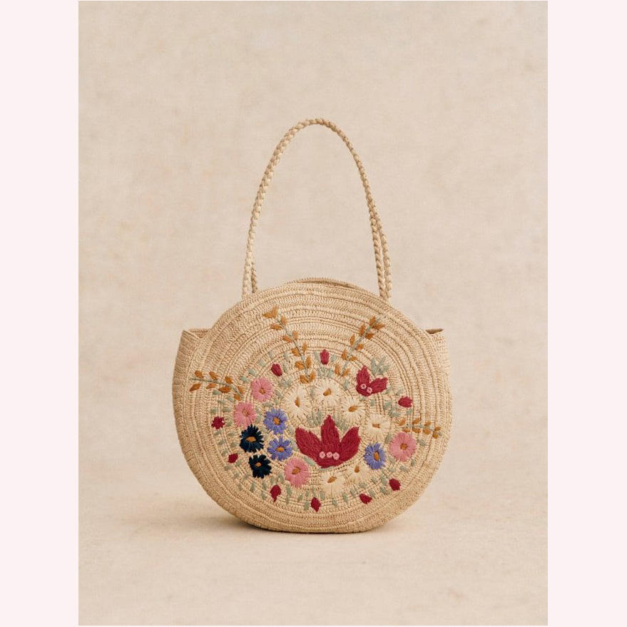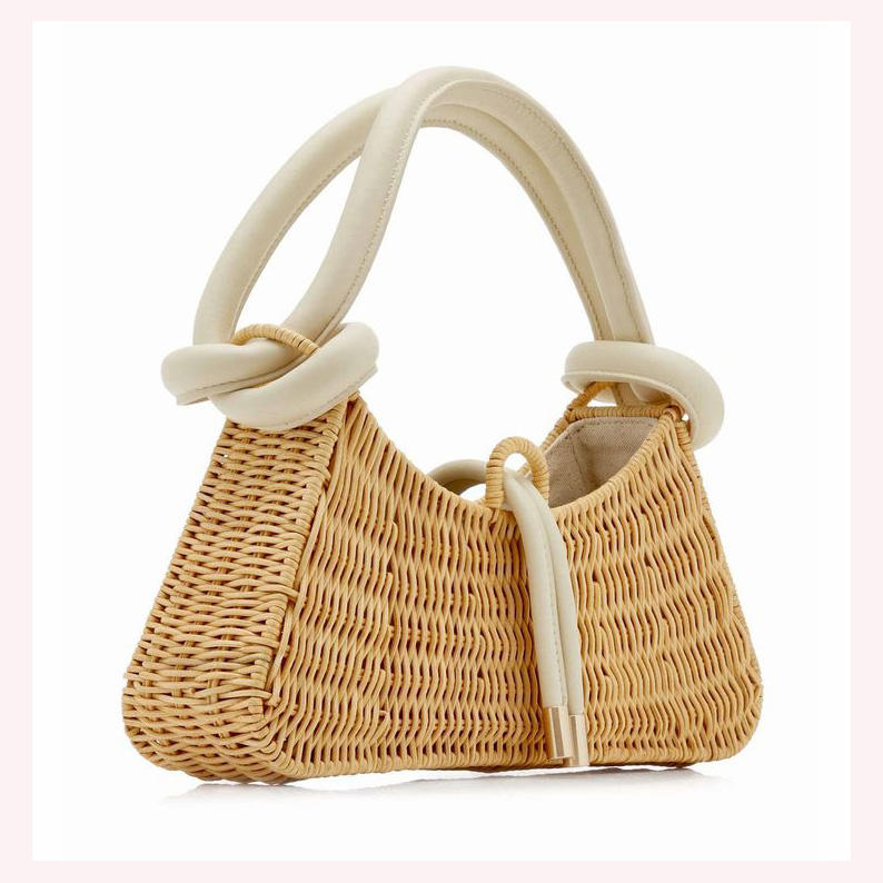 Luxury Boho-Chic Woven Handbag Premium Rattan & Raffia Texture with Delicate Pearl & Diamond Accents