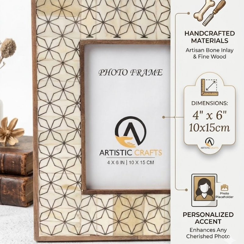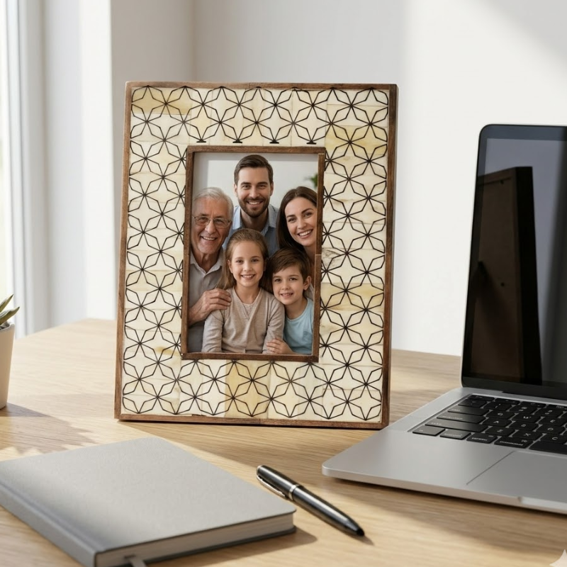 Luxury Bone Inlay Photo Frame 4x6 Inch |Handcrafted Carving Design Decorative Picture Frame for Tabletop, Office Desk & Gift Use