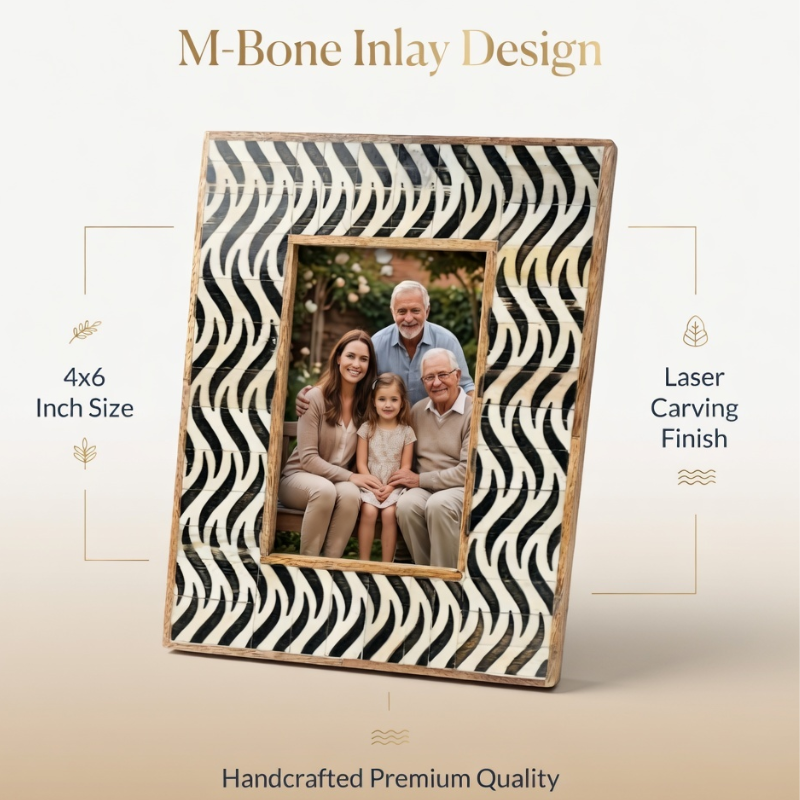 Luxury Bone Inlay Photo Frame 4x6 Inch Handcrafted |Elegant Decorative Picture Frame for Tabletop Office Desk Home Decor Gifting