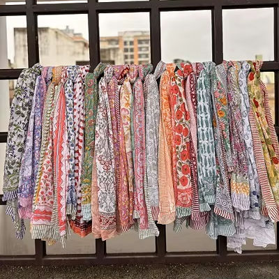 Luxury Brand Designer Sarong Good Quality Block Printed Beach Wrap Sarong Scarf Dress Cotton Swimming Wear Customizable Shawls