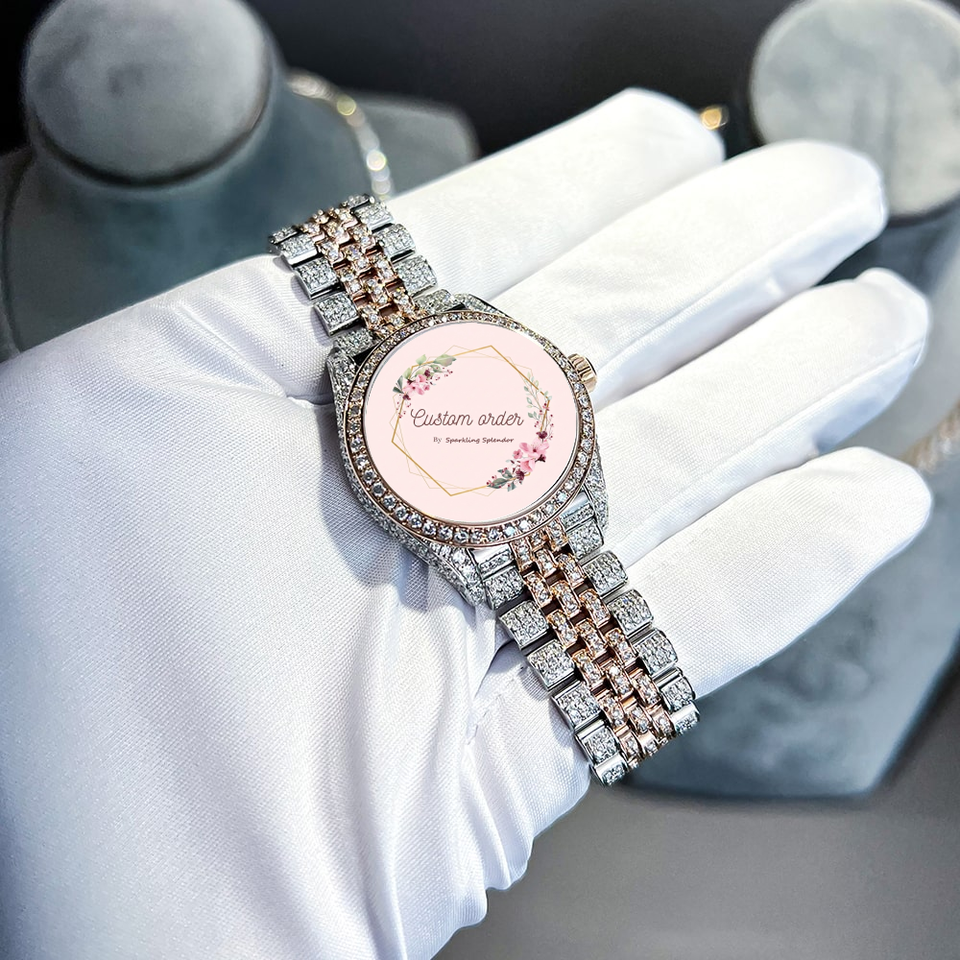 Luxury Brand Fully Iced Moissanite Studded Automatic Watch Custom Stainless Steel Mechanical Analog Movement Water Resistant