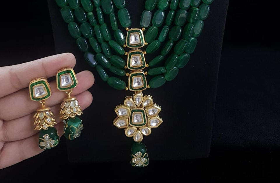 Product name:Luxury Brass & Copper Necklace & Earrings Set with Beads