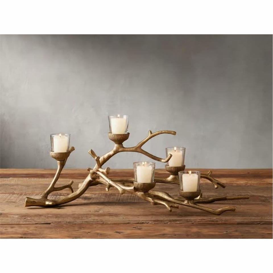 Luxury Brass Olive Branch Taper Candle Holder Gold Metal 4-Arm Candelabra for Wedding & Home Decor Metal Candle Stand For Decor