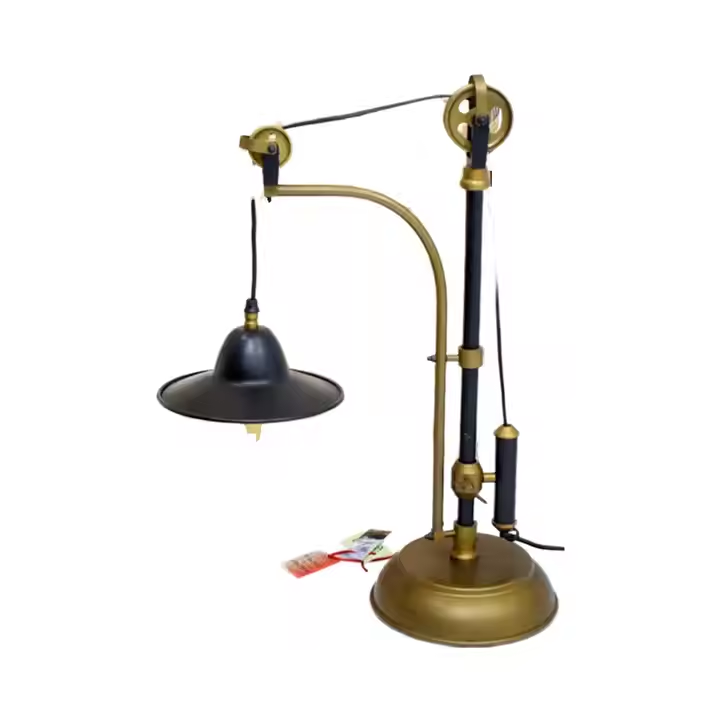 Designer Handmade Brass and Aluminium LED Lamp with Decorative Pulley Feature Ideal for Office Table and Floor Decor