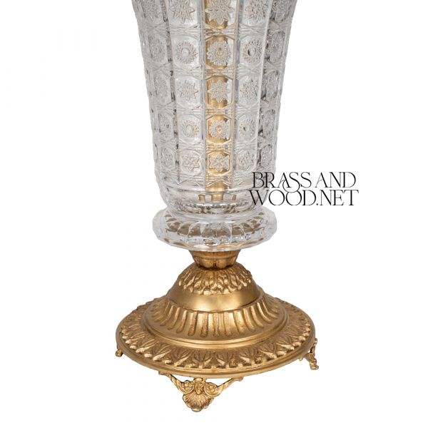 Antique Brass and Crystal Table Lamp with White Pleated Shade Handmade Decorative Lighting Piece with Classic European Design