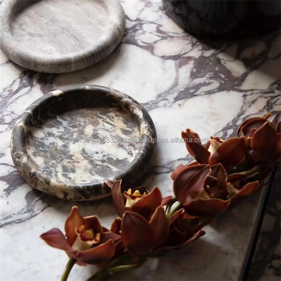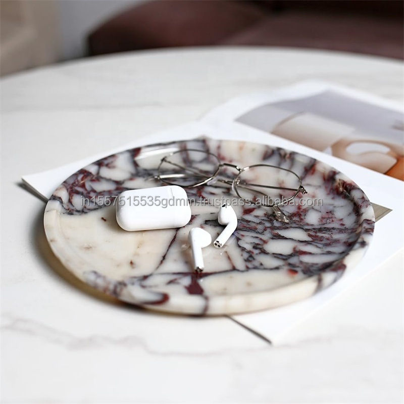 Luxury Breccia Marble Countertop with Matching Accent Trays Viola Calacatta Marble Stone Drink Coaster and Placemat Set of 4