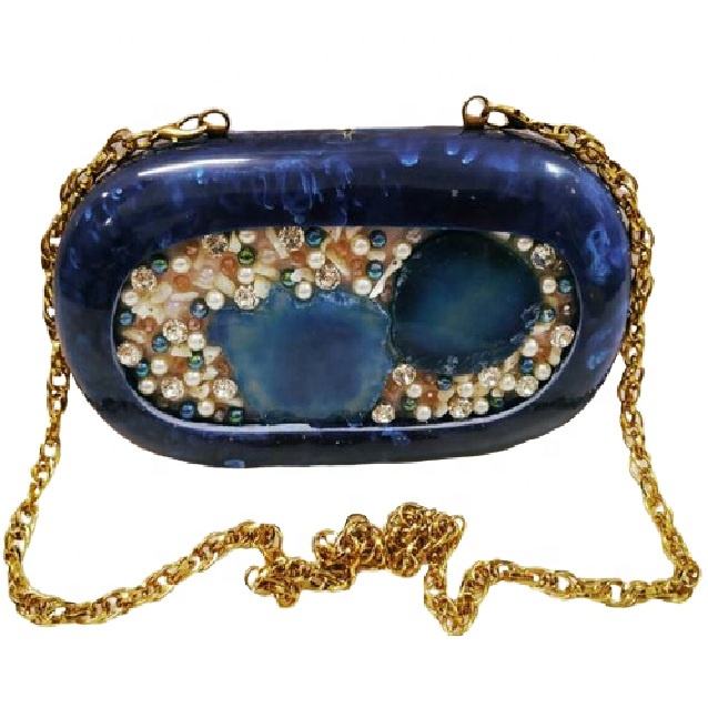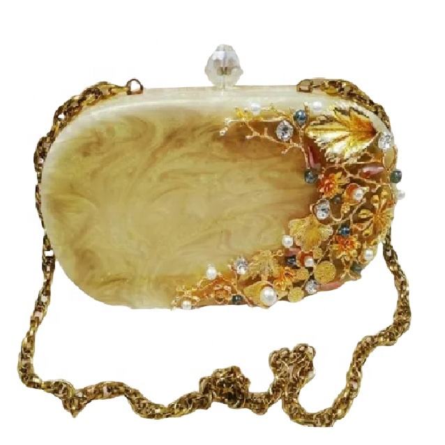 Luxury Brown Resin Rhinestone Evening Clutch Bag