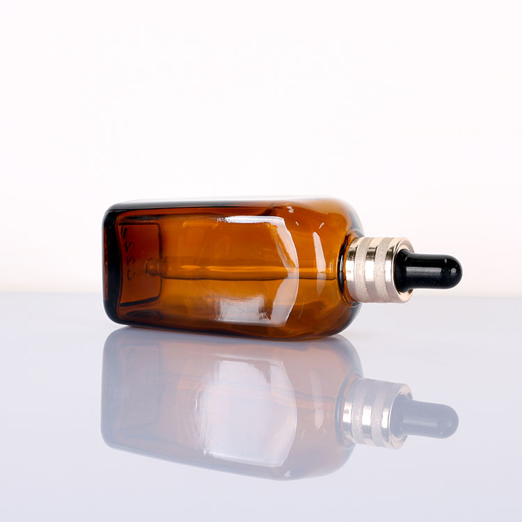 Luxury Brown Square Cosmetic Glass Body Lotion Bottle 10/50/100ml with Gold Lid Empty