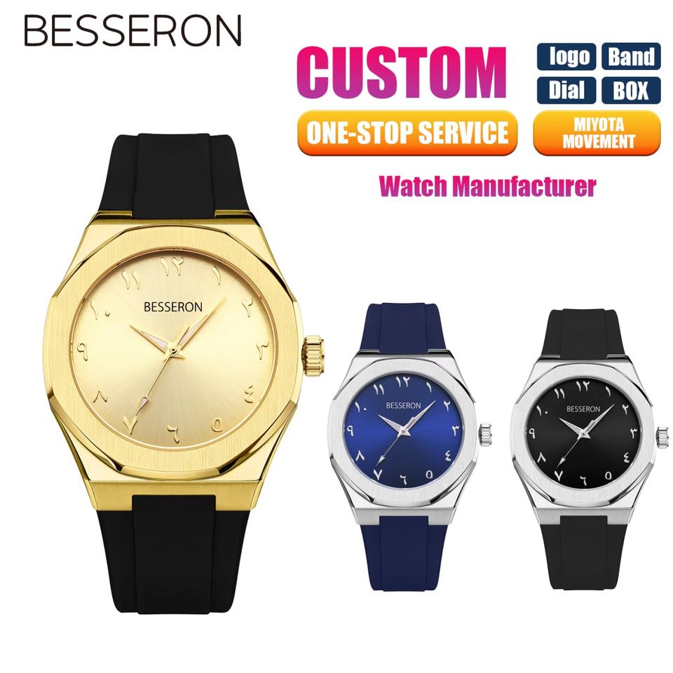 Luxury Business Sport Style 5BAR Waterproof Glass Dial Stainless Steel Watch with Silicone Band Quartz Movement for Men