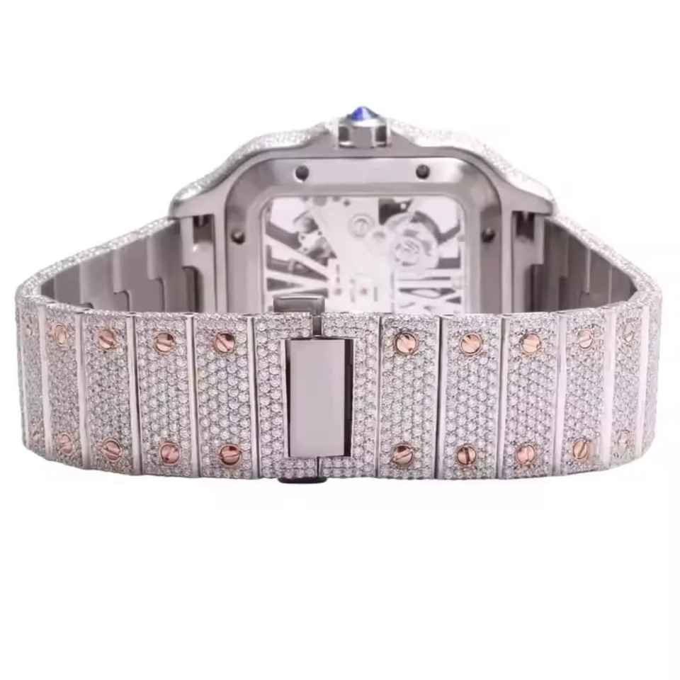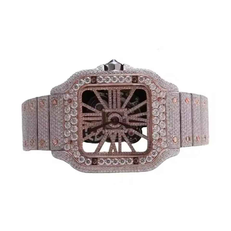 Luxury Business Style Analog Quartz Watch with Two Tone Rose Skeleton Design Iced Moissanite Diamonds and Elegant