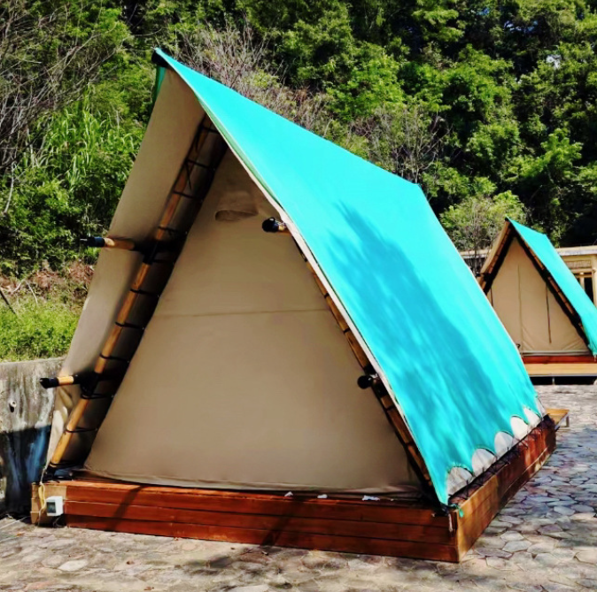 Luxury Camping Safari Tent with Wood Pole Frame Outdoor Triangular Safari Glamping Party Family Indian Tipi Tent