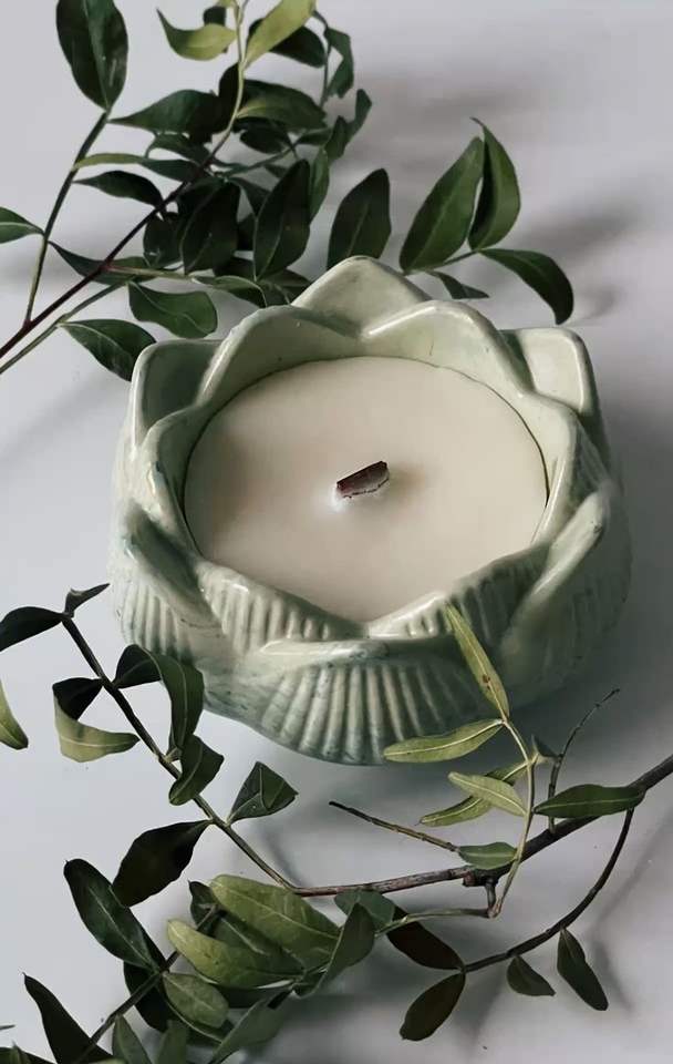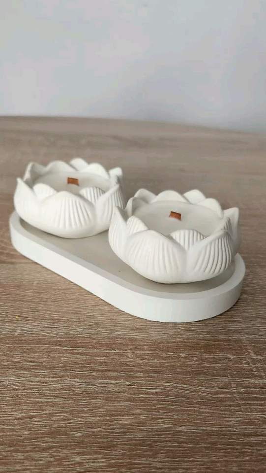 Luxury Ceramic Lotus Petals Style Flower Shape Candle Holder Tea Lights Holder Candlestick