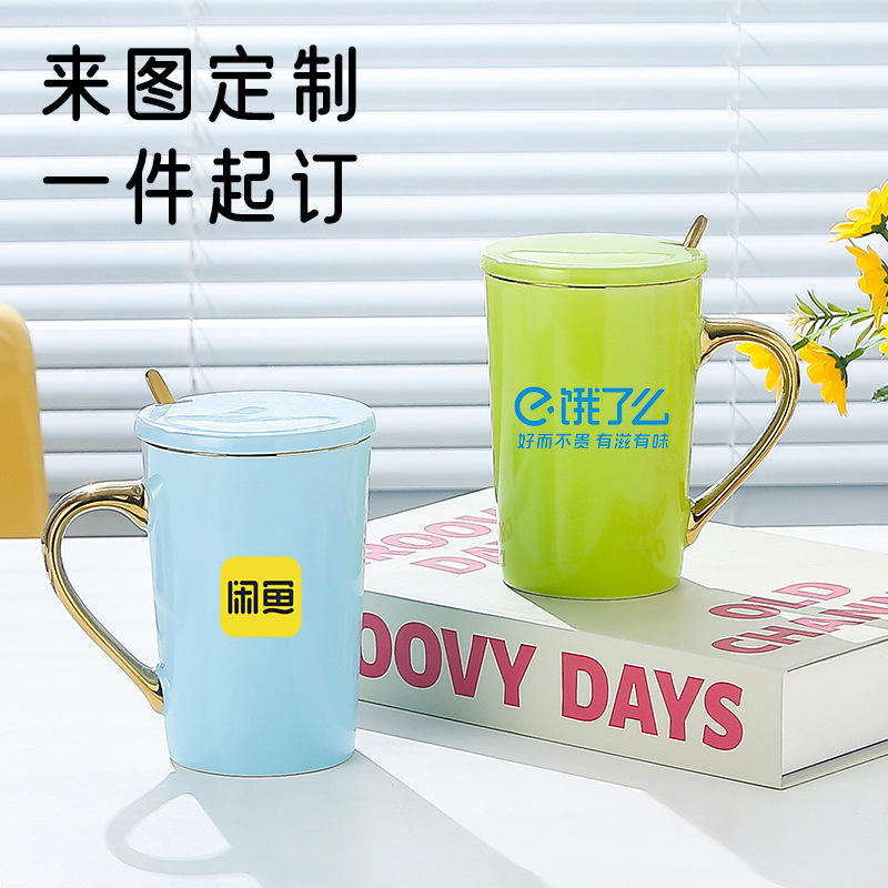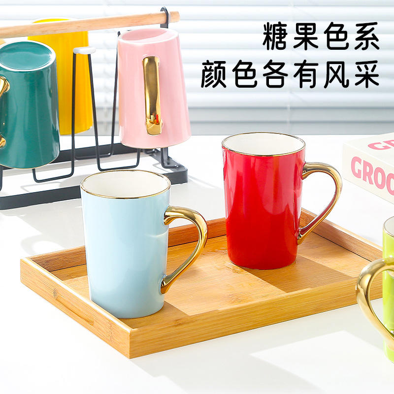 Luxury Ceramic Mug Red Gold Plated Rim And Handle 301-400ml Modern Design For Coffee Tea Gift