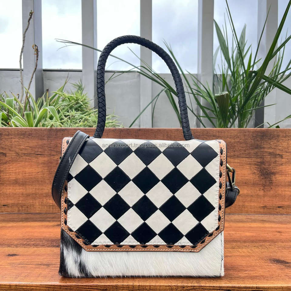 Luxury Checkered Design Genuine Cowhide Leather Crossbody Bag & Tooled Cowhide Leather Card Holder Wallet 2-Piece Combo Set