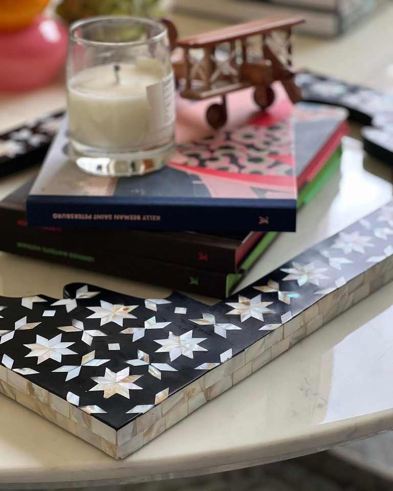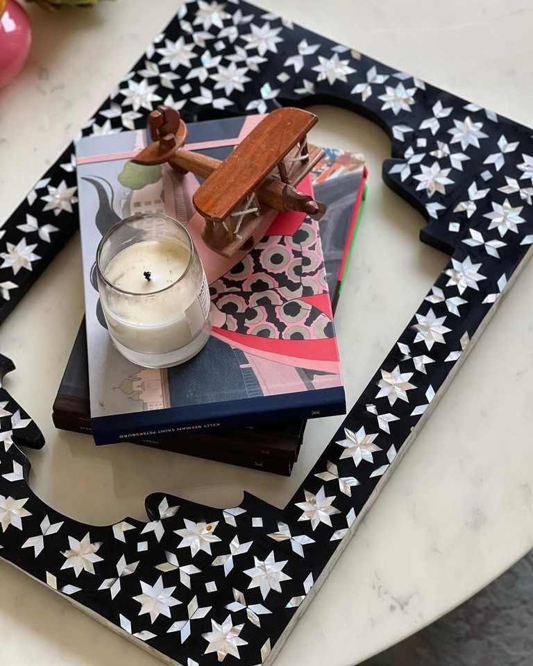 Luxury Chocolate and Snack Serving Plate for Ramadan & Eid Celebrations Modern Tray with Mother of Pearl Inlay Artistic