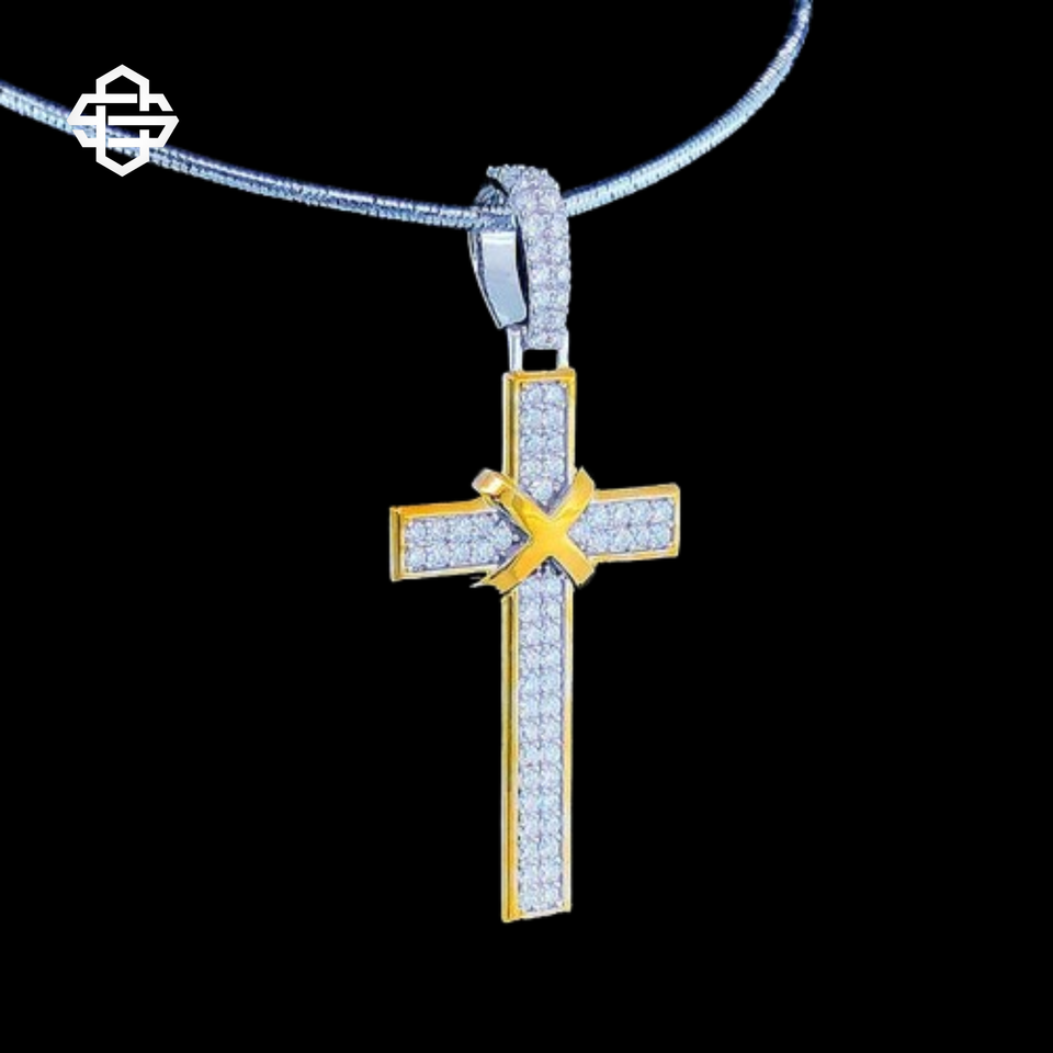 Luxury Christian Hiphop Diamond Iced Cross Pendant Necklace for Men 14K Gold Plated Alloy Bling Cuban Chain Rapper Jewelry IGI