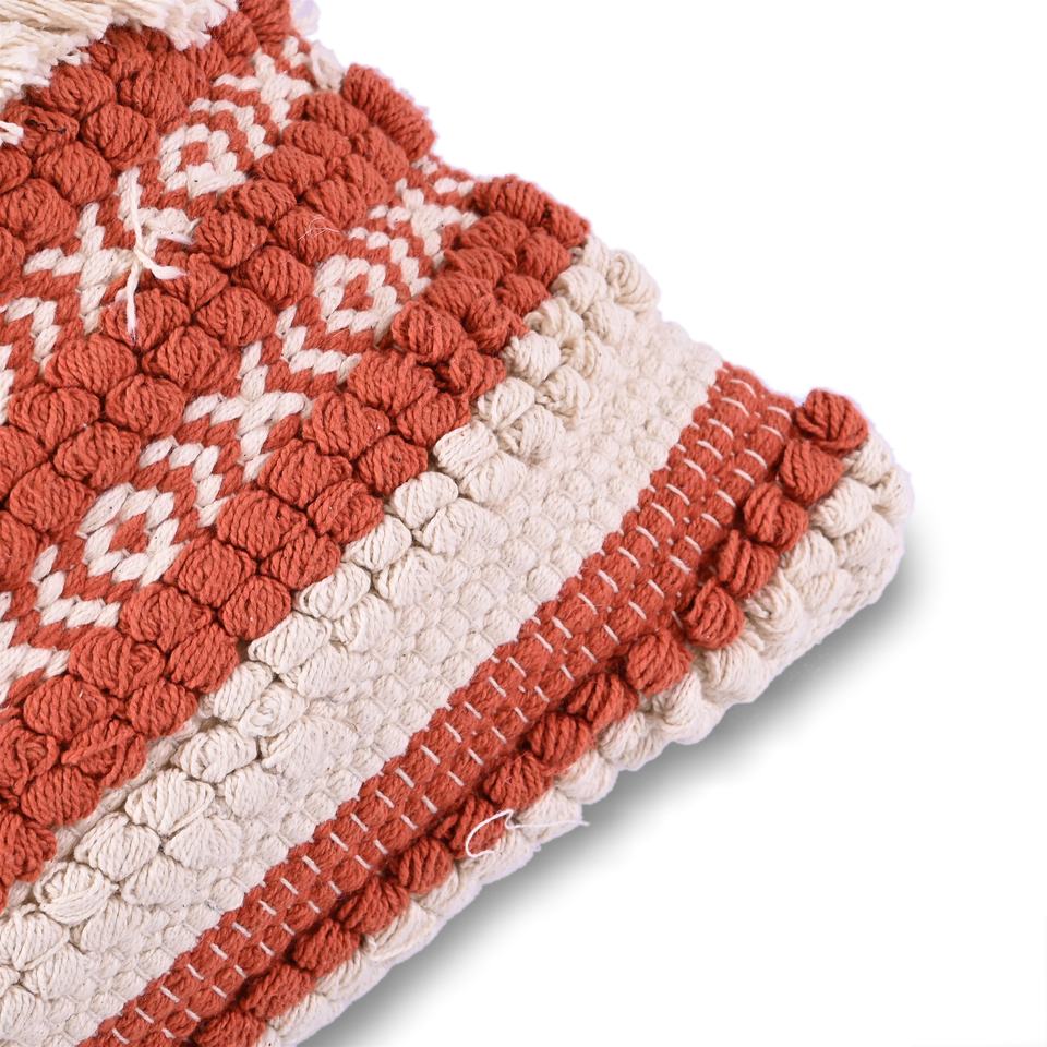 Luxury Christmas Boho Cushion Covers With Added Tassels Scandinavian Cotton Woven Loop Tufted Clay Red And White Pillow Case