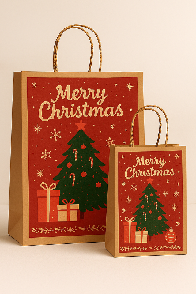 Luxury Eco-Friendly Kraft Paper Christmas Gift Bags with Custom Printed Promotional Packaging for Brands