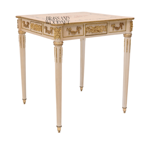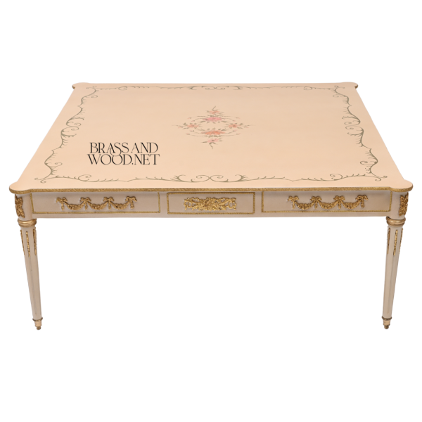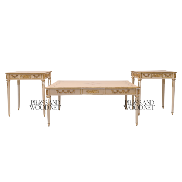 Luxury Classic Cream Wooden Coffee Table Set With Gold Details