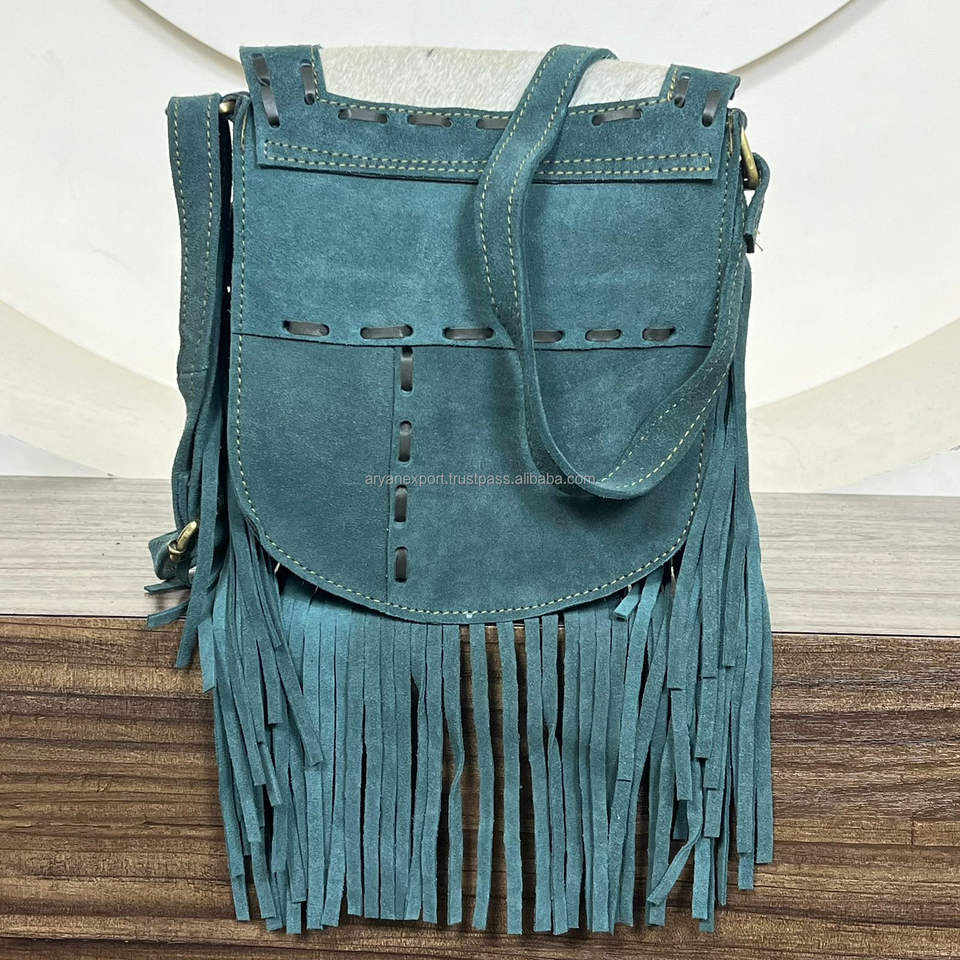 Genuine Cowhide Suede Leather Fringe Bag