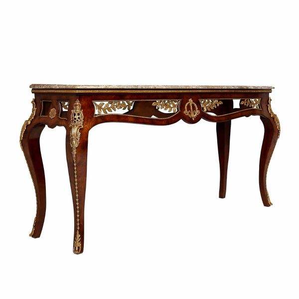 Luxury Classic Long Console Table With Marble Top and Brass Ornaments