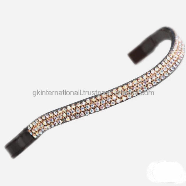 Luxury Clear Crystals Shining Diamante Rhinestones Decorative Genuine Leather Horse Brow Band for Bridle in Full Cob Over Size