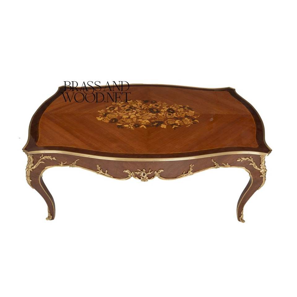 Luxury Coffee Table with Intricate Marquetry Inlays and Elegant Brass Details for Classic Living Room Decor