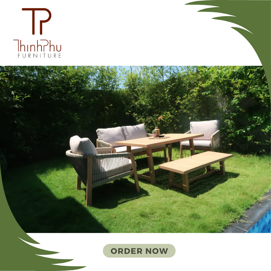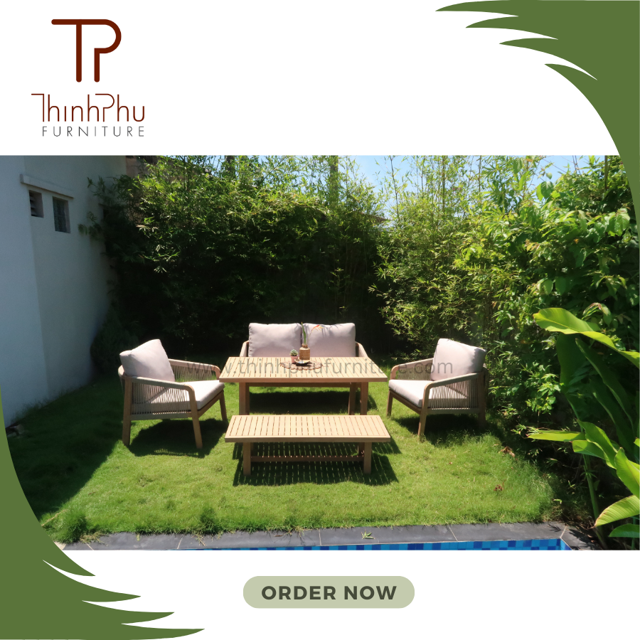 Luxury Contemporary ACacia Wood Wicker Wooden Furniture Outdoor Sofa Sets for Hotels Villas Backyard Garden Patio