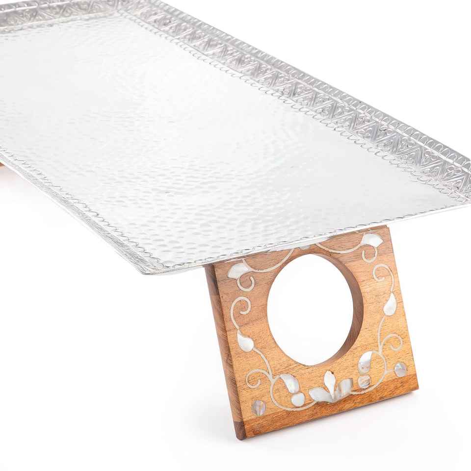 Luxury Copper-Plated Aluminium Mother of Pearl Wood Inlay Decorative Serving Tray Tableware for Home Living Room Weddings Events