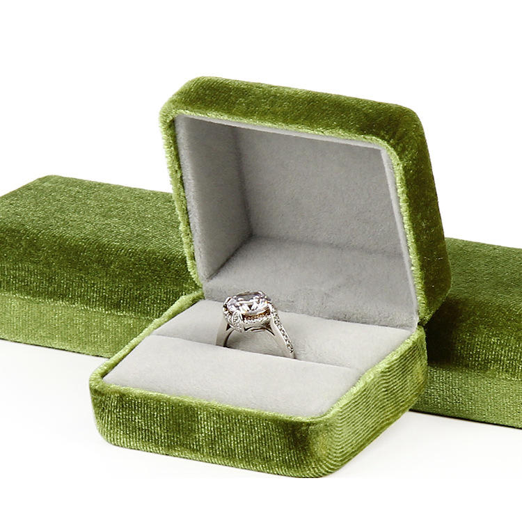 Luxury Corduroy Engagement Ring Necklace Earrings Bracelet Green Velvet Jewelry Box Custom Gift Packaging for Jewelry
