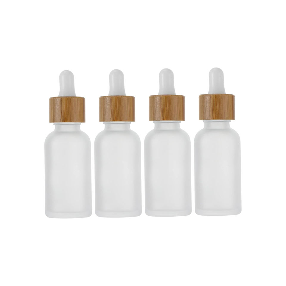 Luxury Cosmetic Packaging Clear Glass Face Serum Dropper Essential Body Oil Bottle With Bamboo Lid Dropper Serum Bottles