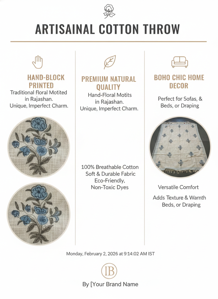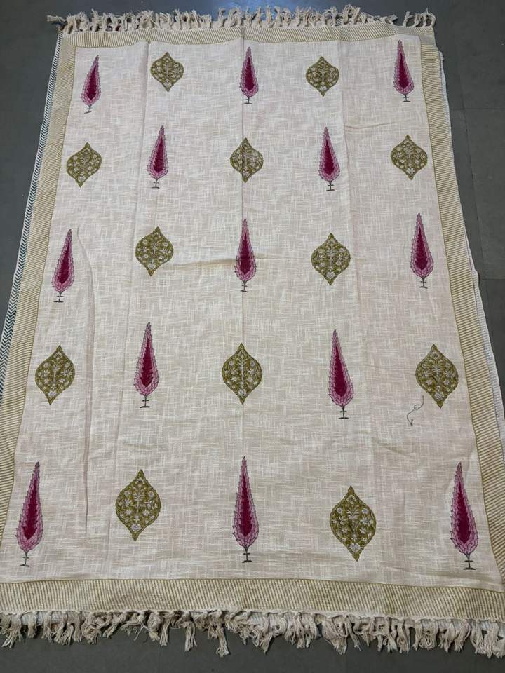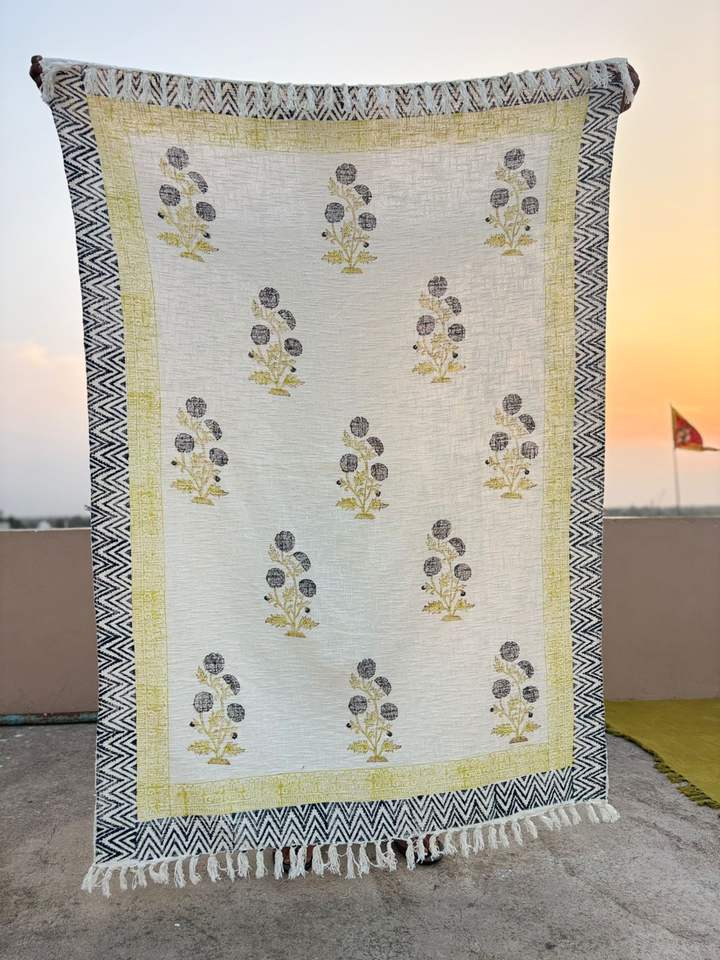 Luxury Cotton Block Printed Sofa Throw Handmade Boho Couch Cover Decorative Tassel Blanket Sustainable Living Room Home Decor
