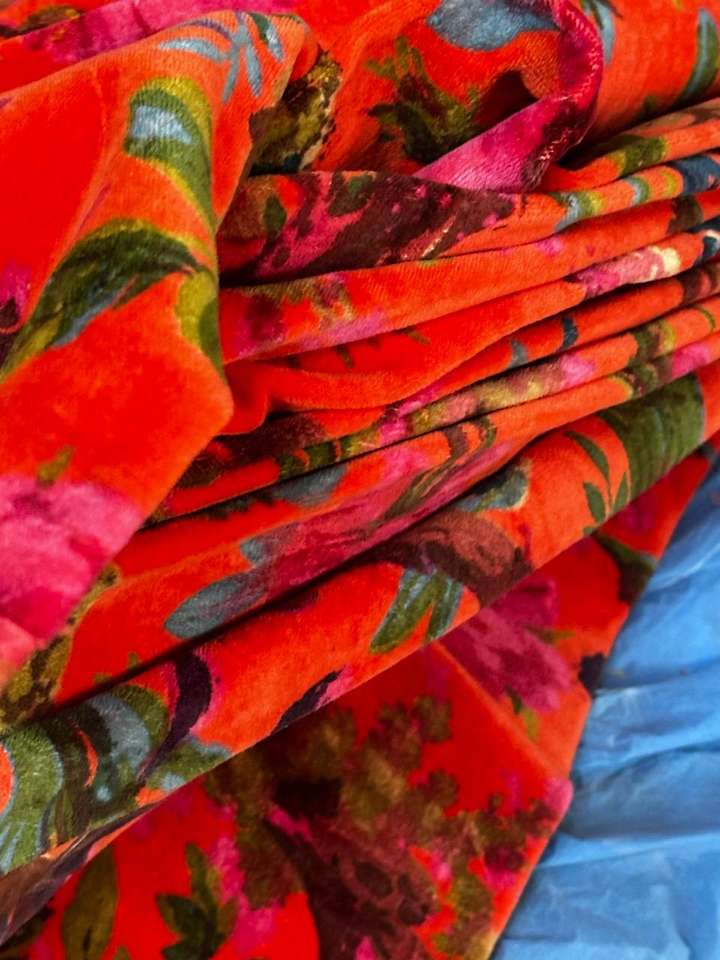 Luxury Cotton Velvet Bird Print Yards Coral Orange Velvet Fabric Upholstery Bag lampshade Curtain Cushion Cover And Home Decor